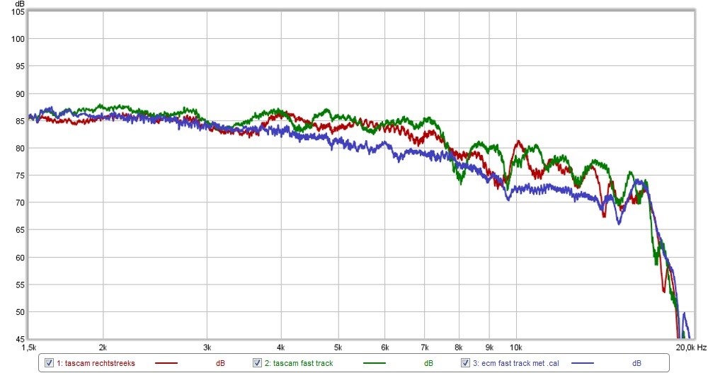 Just to give an idea, these are the same measurements, WITH .cal file applied for the ECM8000 mic