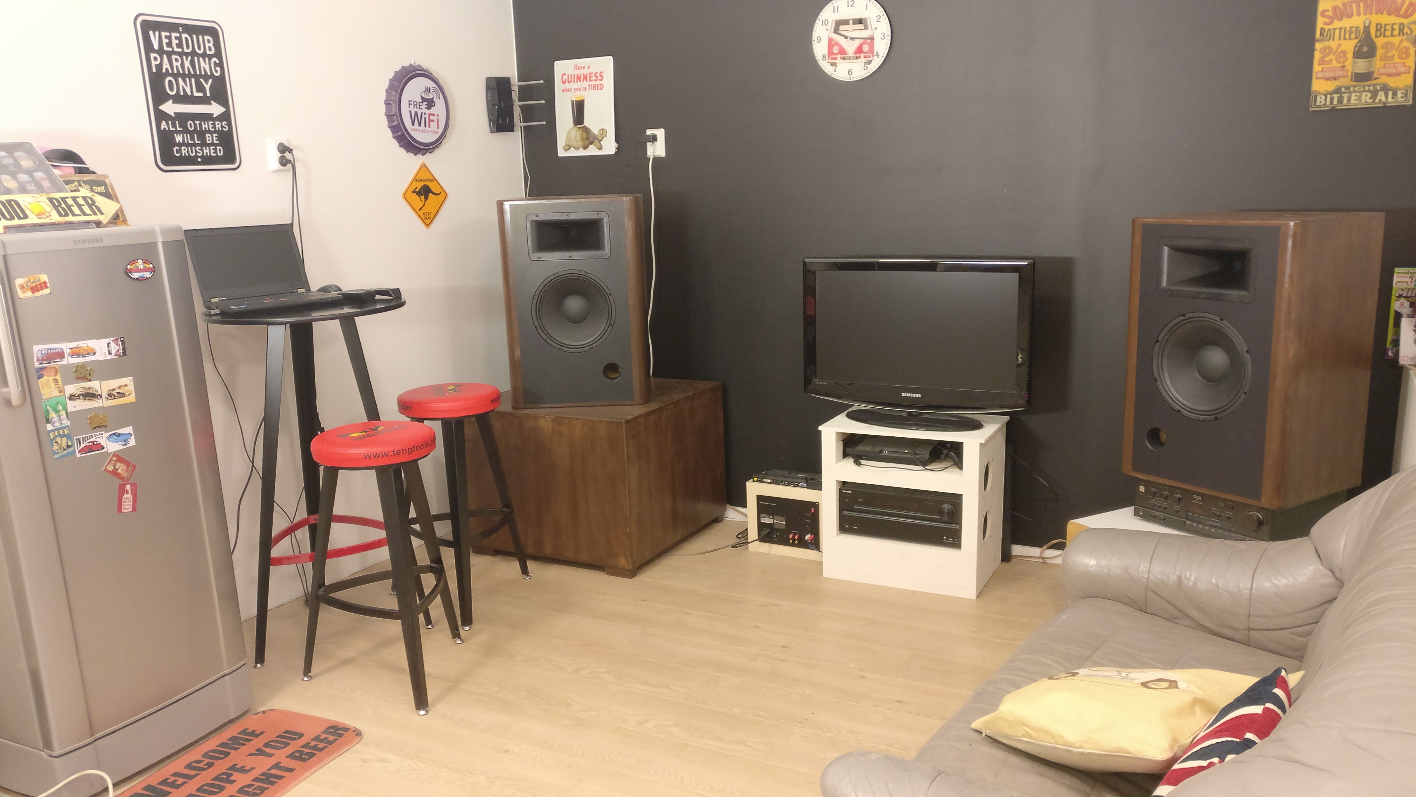 Built some speaker stands to get them down to the right level. This was a big update that didn't cost much Rolling Eyes should have done this ages ago!