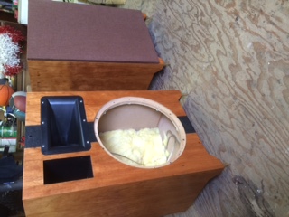 I got the horns recessed/routed 1/4" in to the cabinets. I had to make a jig that I clamped on to the cabinets, which took longer than finally routing in the recess. This was somewhat nerve racking, as the veneer was already installed, but it worked out fine.