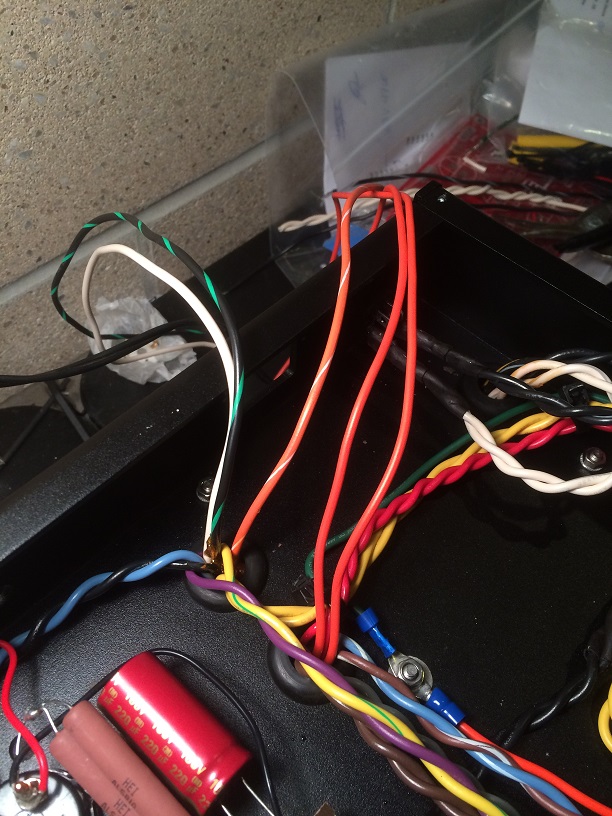 The pics are out of order. The ones with the transformers next to the chassis was at the beginning of the build, where you feed their wires through the rubber grommets of the chassis.