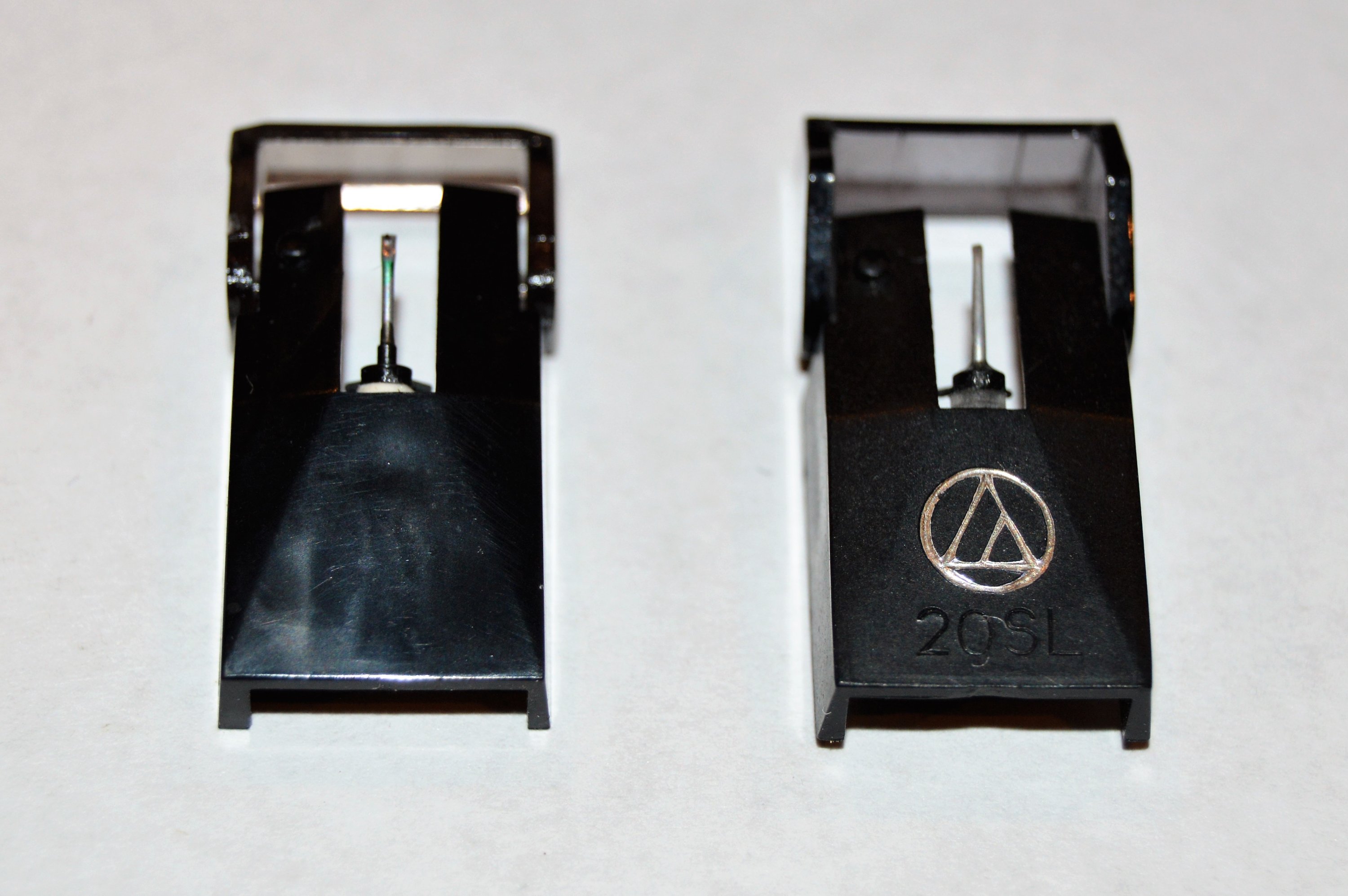 The Audio Technical stylus is used, but doesn't appear to be worn. I still plan to view both styli with side-mounted lighting and to look for the "hot spots" on either side as prescribed by Shure. But for now, just viewing the styli with the built-in camera lighting, I could still see the tips well enough to draw the conclusion that neither were excessively worn.