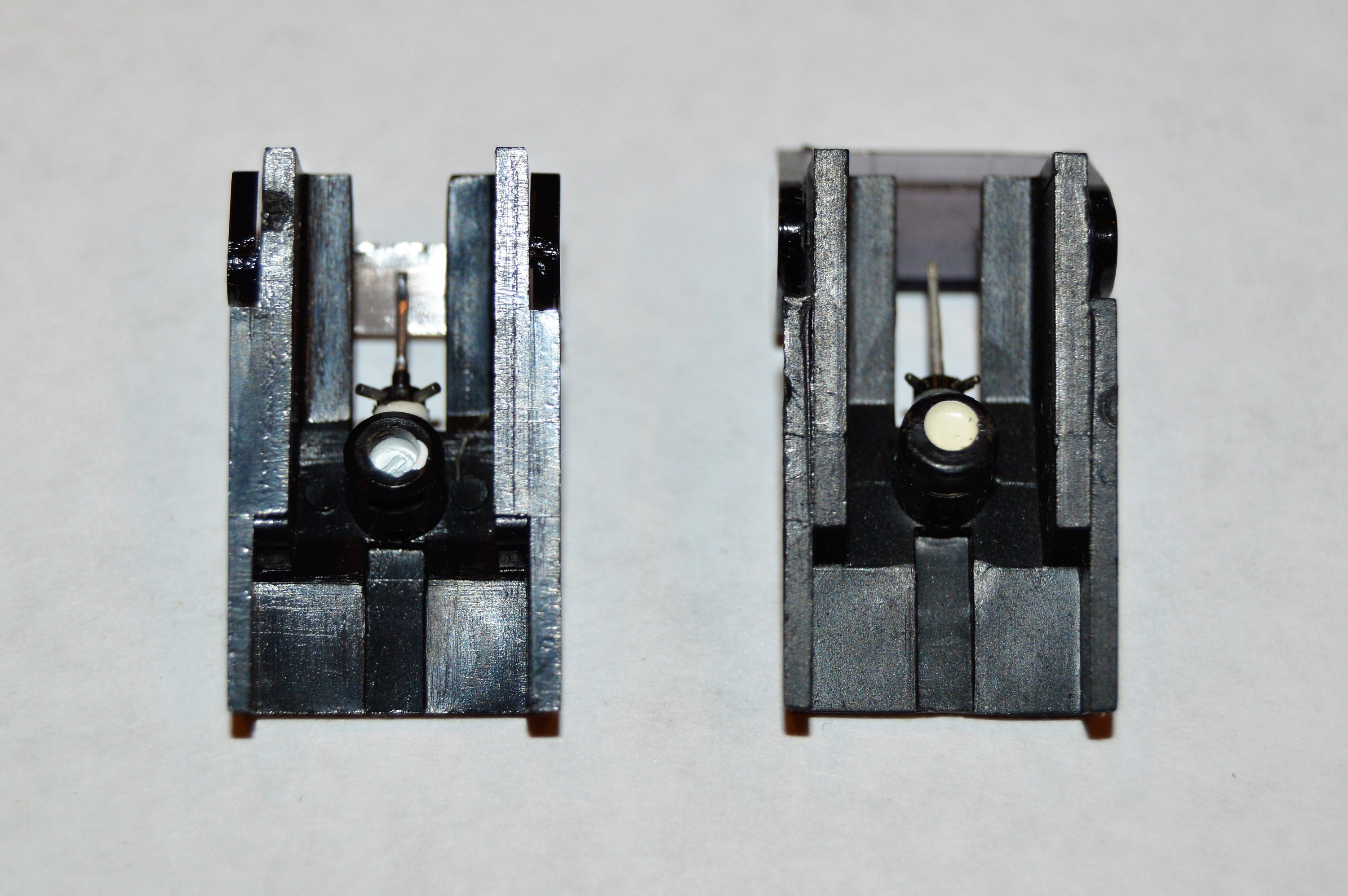 Comparison of the two styli at 100x magnification: