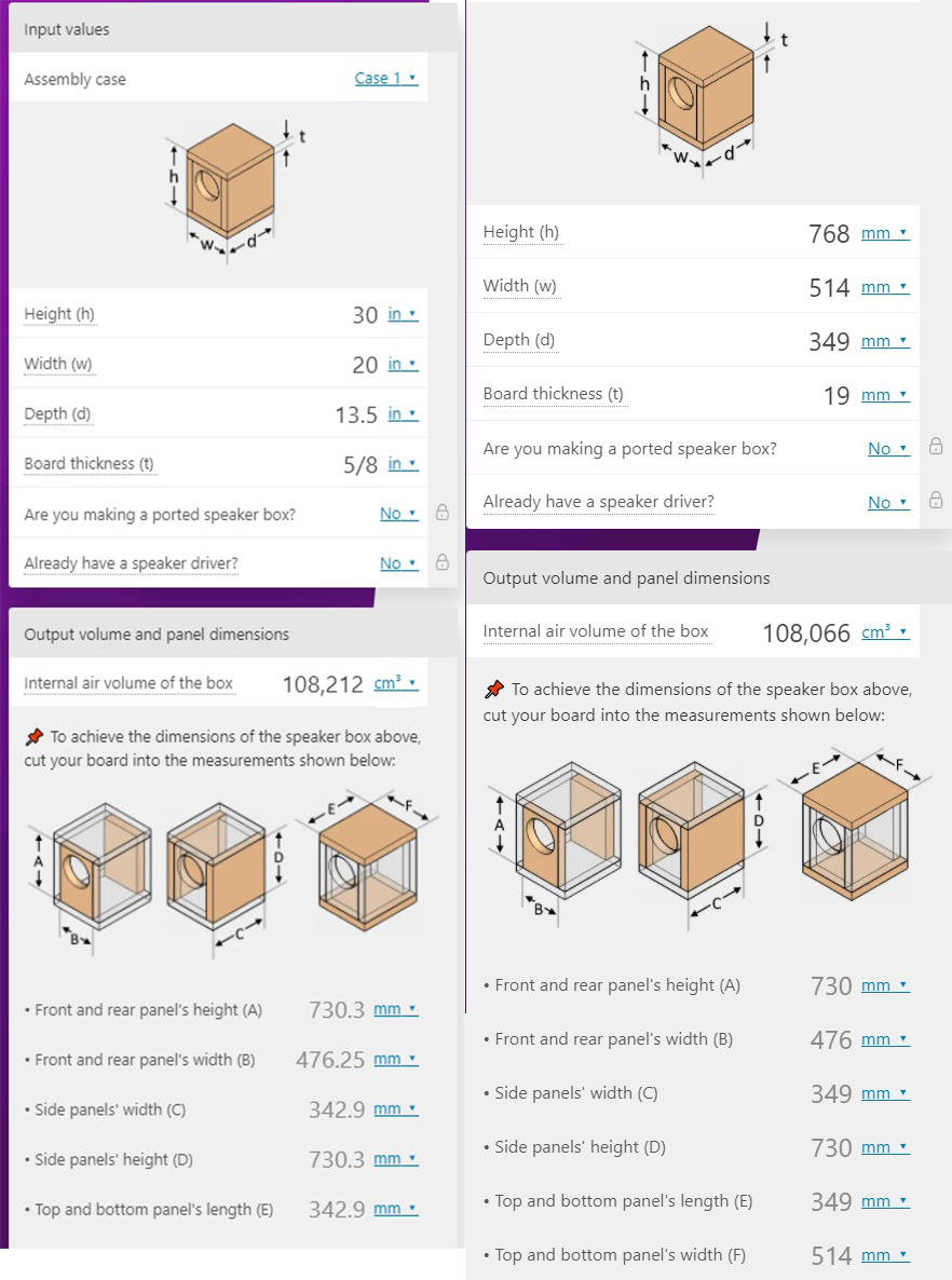 This is the overall size compared to the original plans. The stock is a bit thicker (19mm - 3/4") and there's a very slight difference in internal volume (shown in the picture) which I think is negligible. This is due to rounding values from in to mm.