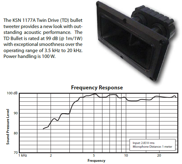 The KSN1165 looks very similar to the KSN1167 , but the KSN1165 has a larger/thicker piezo drive element. Also the horn throat is deeper and the overall diameter is larger than the KSN1167. KSN1165 is rated to about 3500-3800hz and up , while the KSN1165 is rated from 1800hz and up.