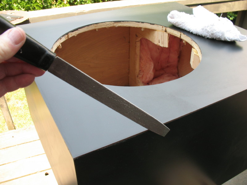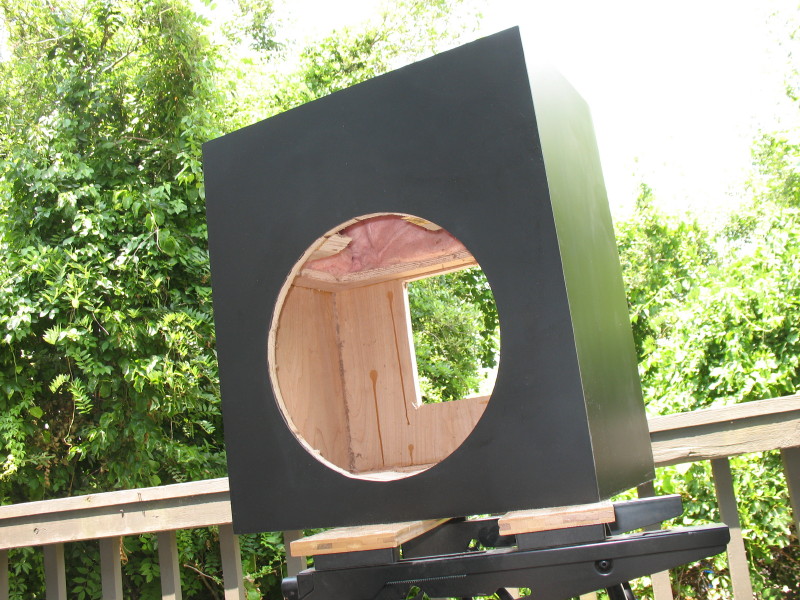 And finally, here is the finished cabinet ready for the driver and plate amp. One down, one to go, next day off.
