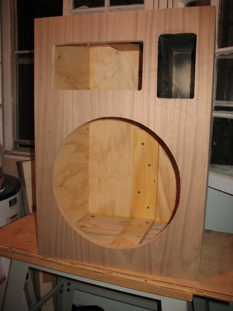 A closer look at the plans will show that it's just a box 3 1/2" x 6" x 10" internal that gets glued to the inside of the baffle. Make the horn cut-out first, then you will discover that the side of the box is just a fraction away from the side of the cabinet. It needs to be close so I just shimmed it away from the side about 1/4" IIRC and glued it in place, square to the horn cut-out. After 24 hours for the glue to dry, I drilled a hole large enough for my flush trim bit to pass through and routed the opening with the port as it's own guide. A little clean-up work with a file and it's done. Simple!