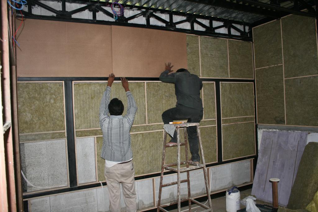 Insulation panels being fixed: