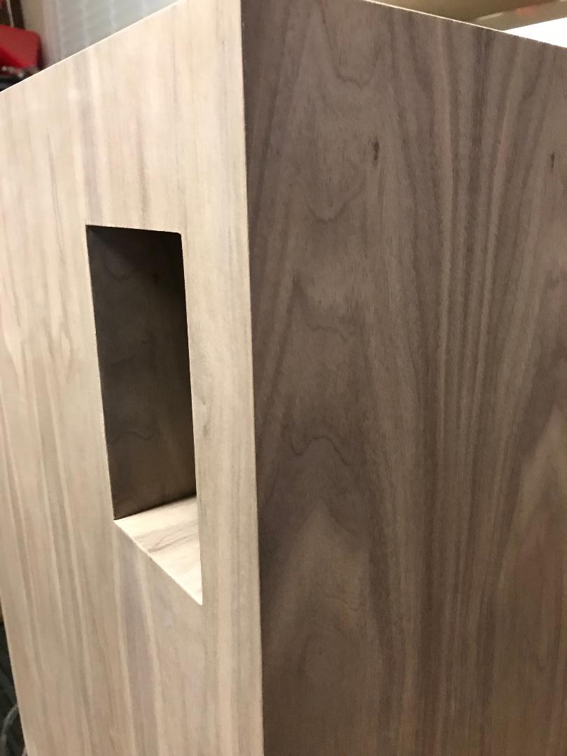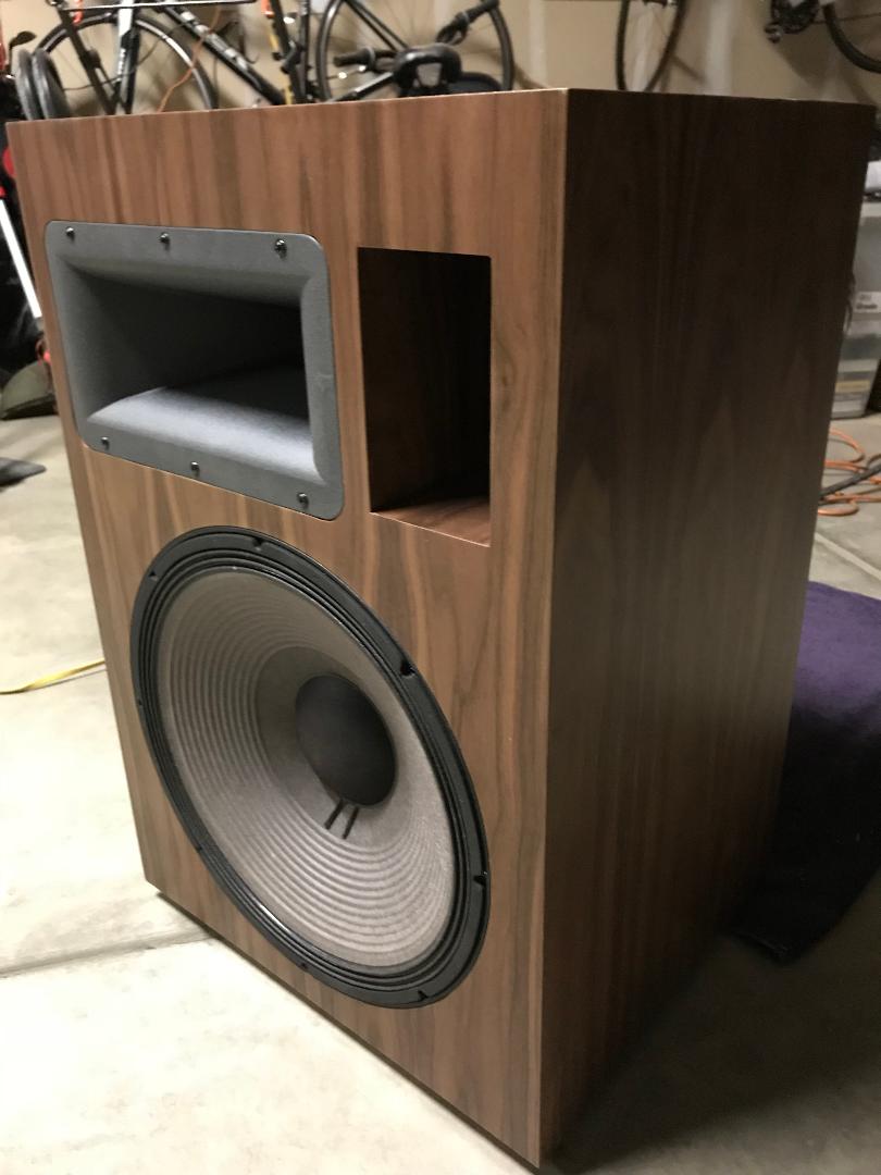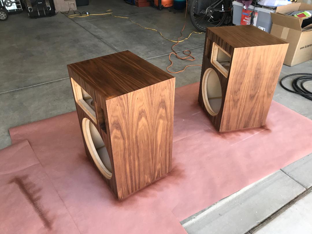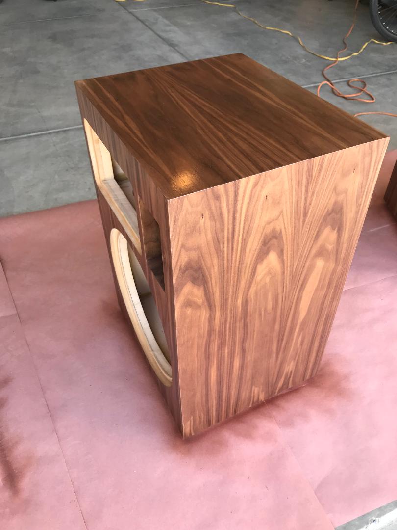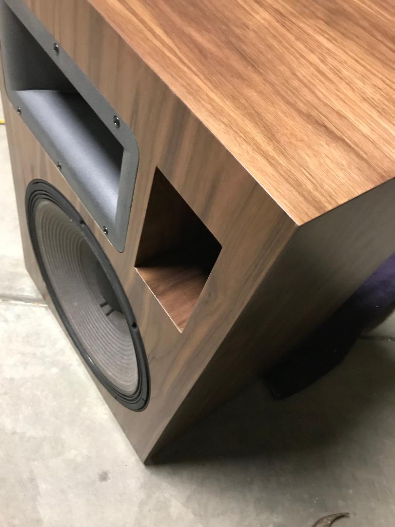 Just completed my Four Pi speakers in Gorgeous American Walnut. Even veneered the port for a very finished look. Maxed out the crossovers, and these are heavily braced. Doubled the face for 1 1/2". I was lucky enough to get the parts from a guy that decided not to build them. All I can say from the first note, is that I knew I had something special! Honestly, the smoothest, best sounding horn I've heard to date. From my experience, making a horn sound smooth is no easy feat, and these are remarkable! Kudos to Wayne for designing a truly world class horn speaker. They seem to play just about everything very well, and if you want to rock, well Holy Sh%t!!! You will feel like the guy in the chair in the old Marantz ad, Older guys know what I'm talking about!! I am really glad I gave these speakers a try, and they deserve a quality cabinet, because they really are that good! Wayne, How do I get some Pi logos?