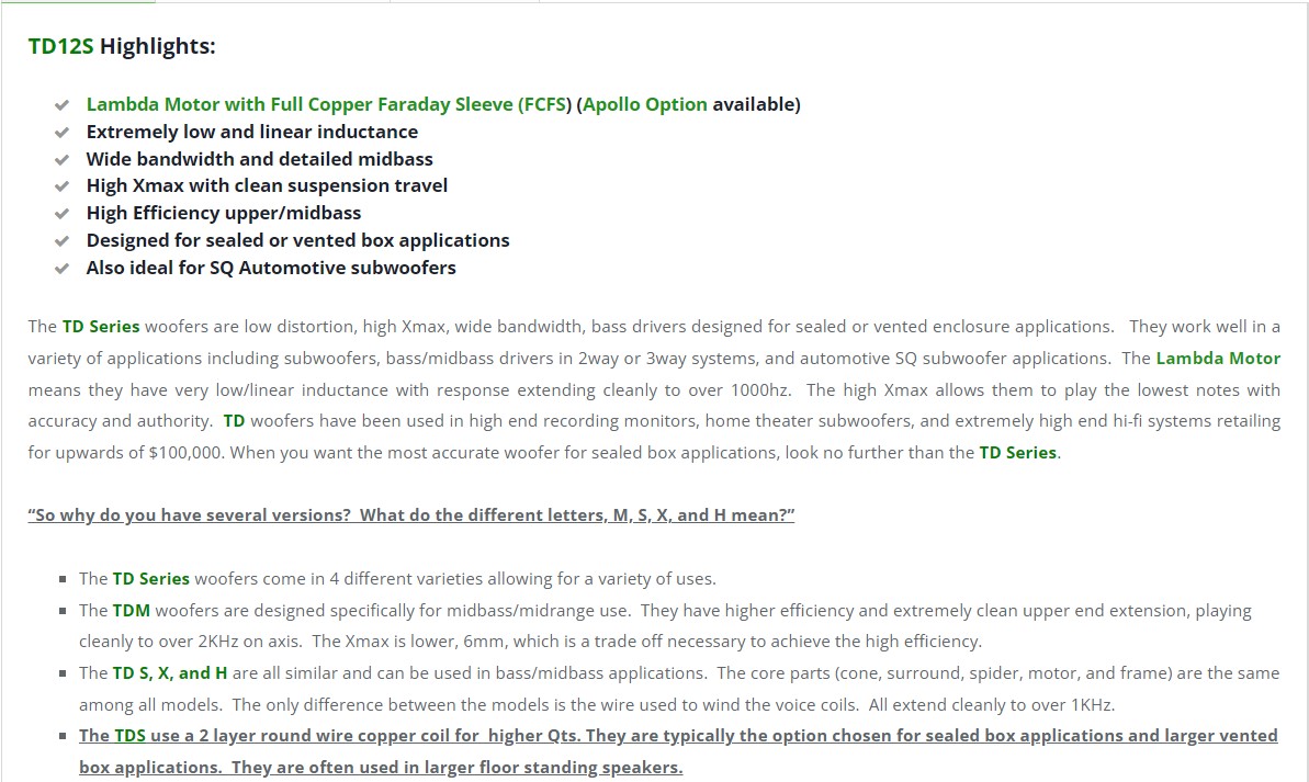 I purchased three of the Acoustic Elegance TD12S drivers a long time ago with the intent of doing a 3pi front soundstage build for a home theater.